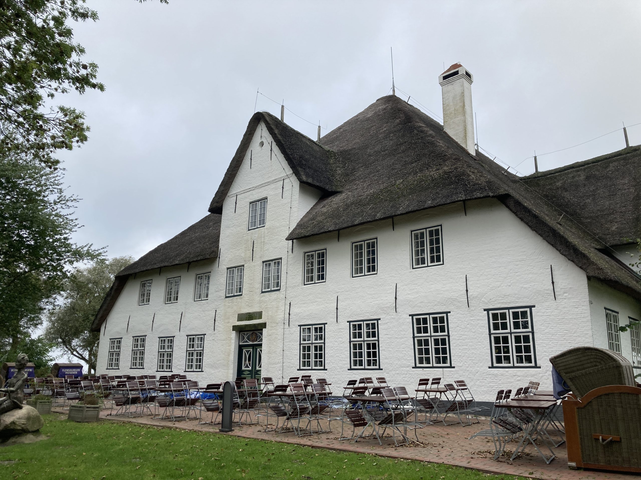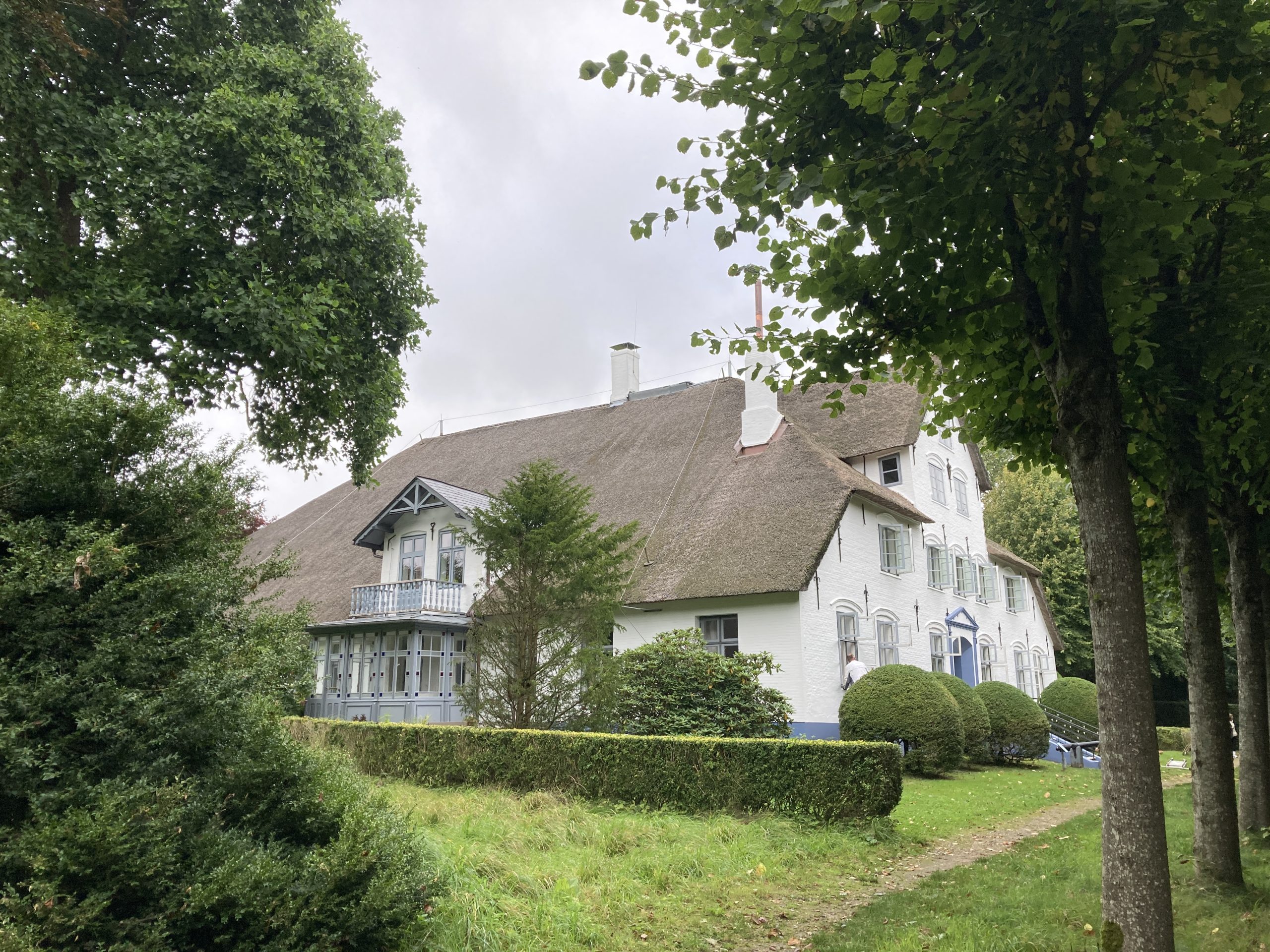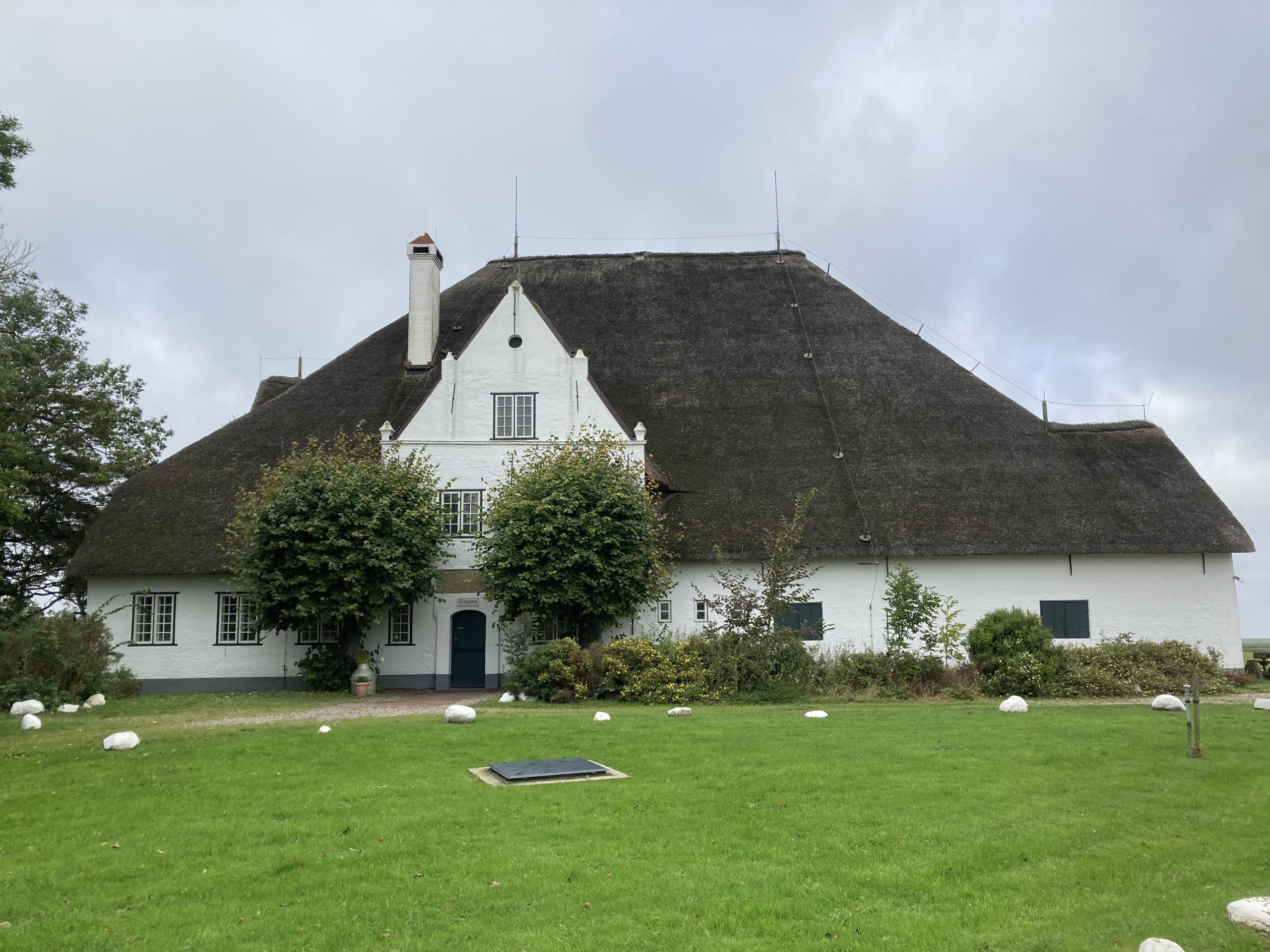 Ganz in unserer Nähe, nämlich nur 5 km entfernt, befindet sich in einem Ort namens Witzwort der „Rote Haubarg“. Hierbei stellt sich natürlich zu aller erst einmal die Frage: Was ist das eigentlich, ein Haubarg? Ein Haubarg ist ein für die Halbinsel Eiderstedt typisches Bauernhaus aus dem 16. Jh. Das Besondere an ihm ist das Einhaus-Prinzip: Wohn- und Wirtschaftsbereiche für Mensch, Tier und Vorräte sind unter einem riesigen, reetgedeckten Dach vereint. Das Wort kommt von den Heubergen, die unter dem Dach gelagert waren und das Überleben im Winter sicherten. Der rote Haubarg liegt ganz idyllisch in einem kleinen Wäldchen auf einer Warft. Man kann ihn noch besichtigen (Museum) und ein kleines Café ist auch dort. Leider hat beides erst ab 11 Uhr auf und so konnten wir unser Wissen über Haubarge leider nicht vertiefen. Übrigens: der rote Haubarg hat genau 99 Fenster, ein sicheres Zeichen, dass der Teufel ihn erbaut hat!!!!