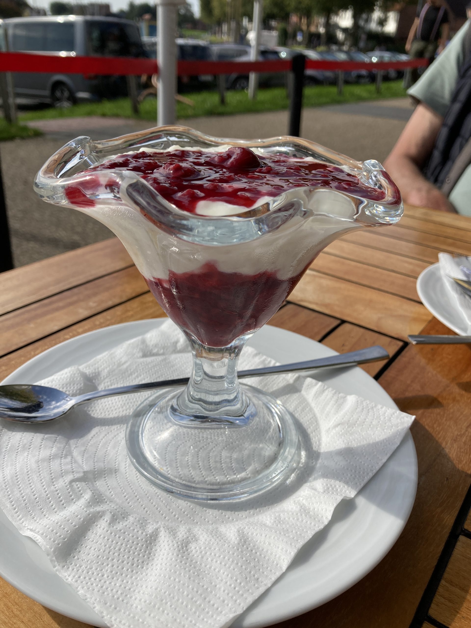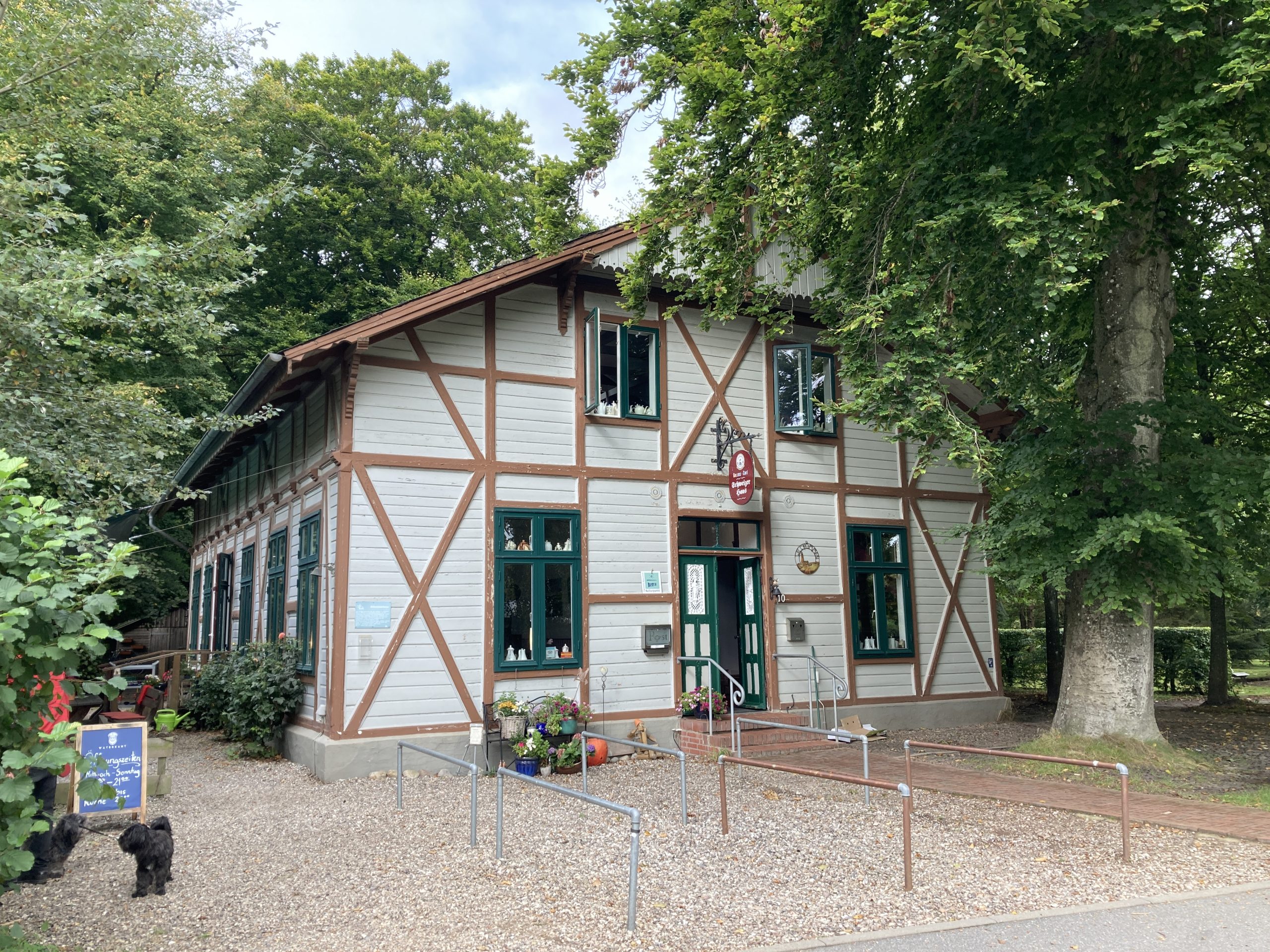 Durch den Schlosspark, in dem ganze Wiesen voller Herbstzeitlosen blühten, ging es zu dem kleinen Hafen. Wir spazierten an dem riesigen Packhaus vorbei, das von den besseren Zeiten Tönnings erzählt, als der Nord-Ostsee-Kanal noch nicht gebaut war. Danach ist das Städtchen ein bisschen in Vergessenheit geraten, bis die Touristen es wieder entdeckten. Am Hafen ließen wir uns im „Goldenen Anker“ (sehr zu empfehlen!) nieder und genossen in der Sonne zwei der hiesigen Spezialitäten: einen Pharisäer und Milchreis mit roter Grütze, beides sehr lecker.