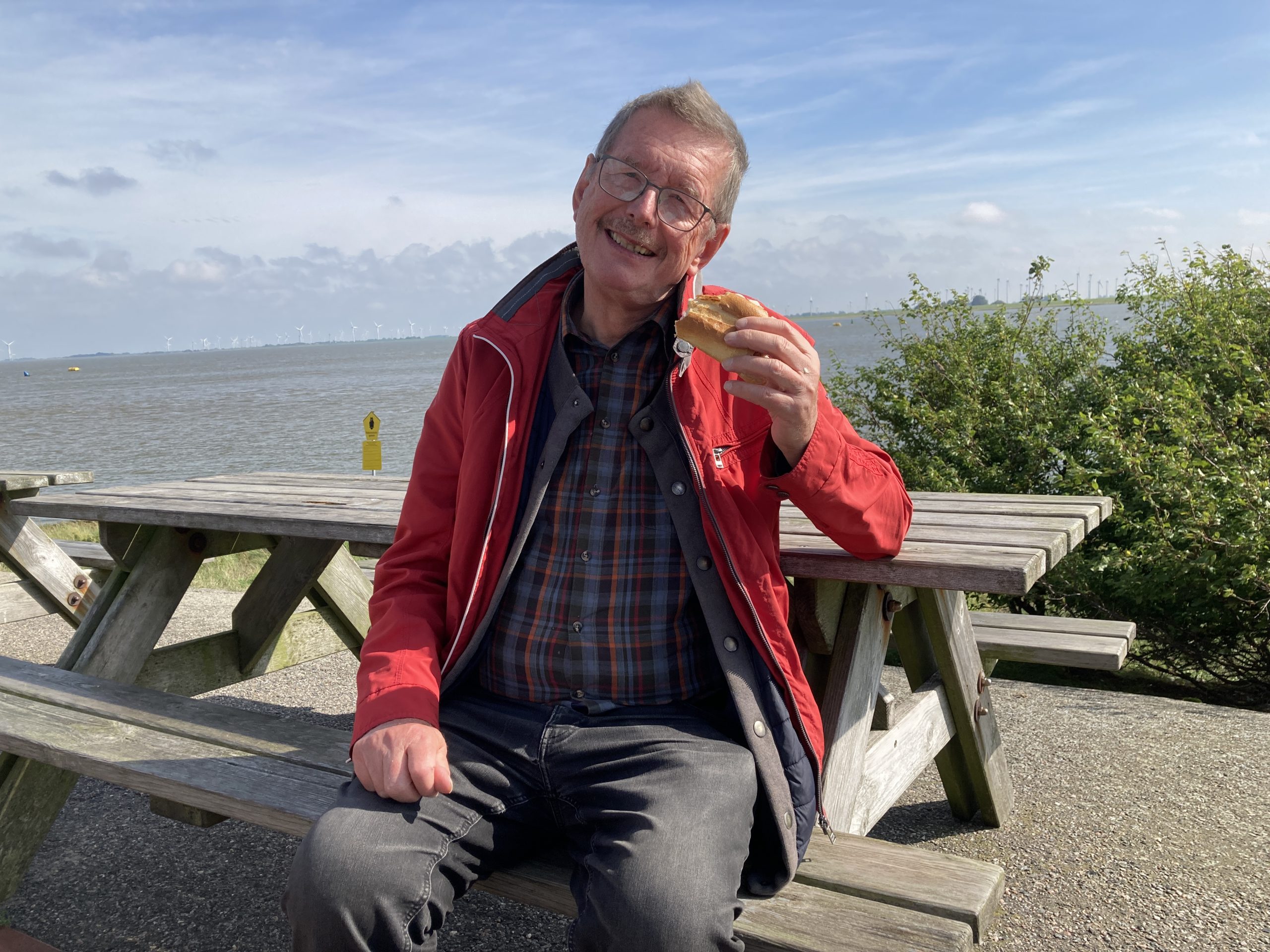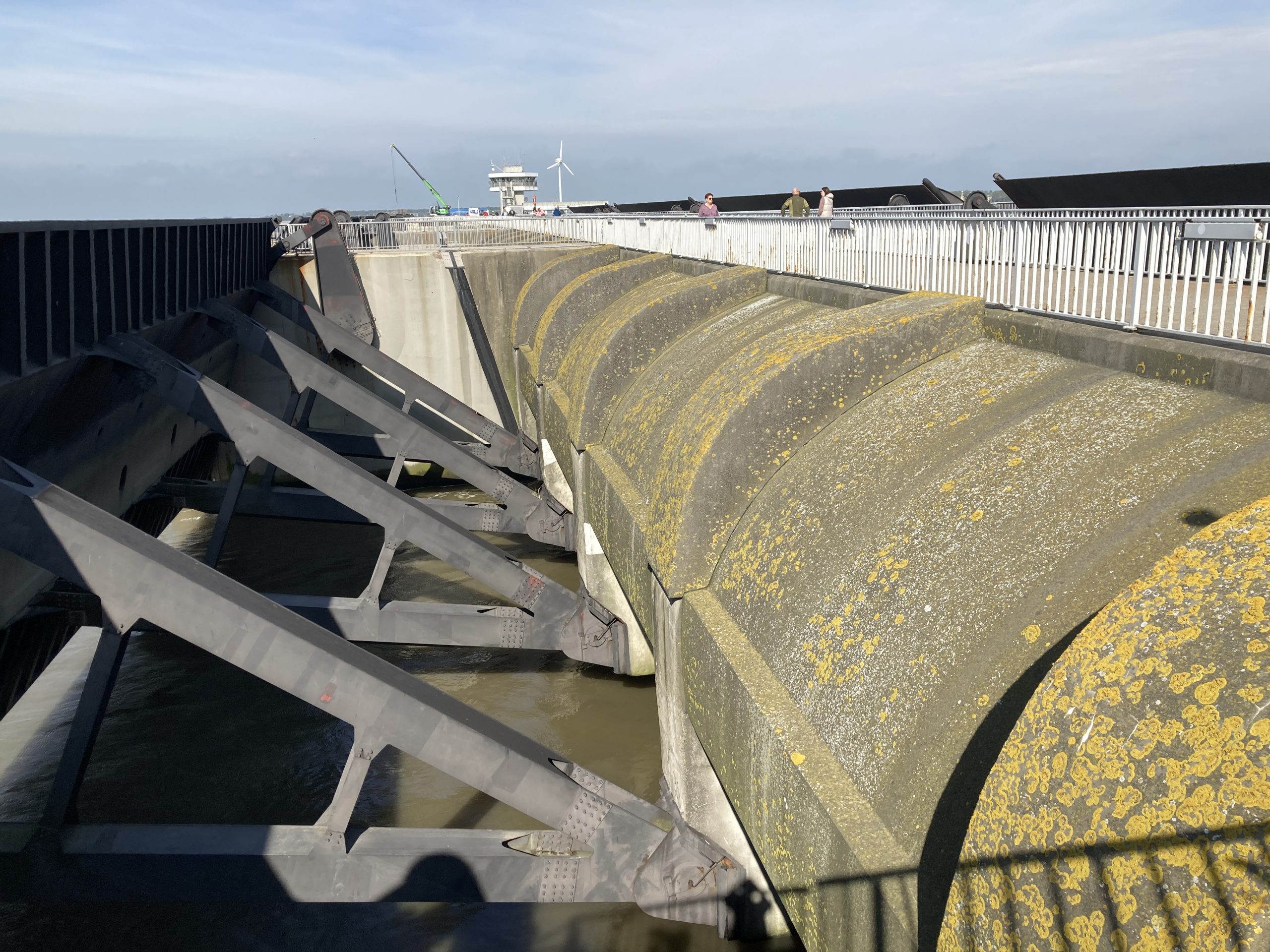 Also nicht wie hin zum letzten Punkt unseres Ausfluges: Das Eidersperrwerk. Es wurde nach der zerstörerischen Springflut von 1962 gebaut und 1973 fertig gestellt. Es dient dazu, die Eider zu entlasten und das Binnenland vor Sturmfluten zu schützen. Dies geschieht, indem bei Bedarf die fünf riesige Tore geschlossen werden können und so der Wasserdurchfluss zwischen Nordsee und Eider reguliert werden kann. Es ist Deutschlands größtes Küstenschutzbauwerk Was uns aber fast noch mehr interessierte, waren die Fischbrötchen im Aussichtspavillon am Südausgang des Autotunnels. Dies sollten nämlich die besten ihrer Art in ganz Nordfriesland sein. Und wir konnten es nur bestätigen: Sie waren ganz frisch gemacht, die Brötchen richtig knusprig und der Fisch unheimlich lecker. Ewald hatte ein Backfischbrötchen und ich eins mit geräuchertem Aal. Köstlich!